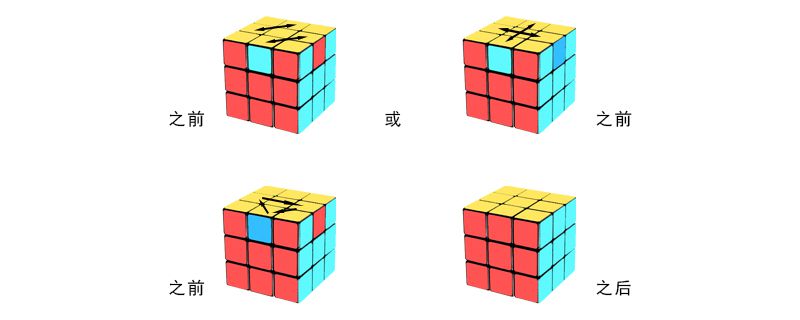 (R U R')、(F'U'F)、(U'F'U F)(U R U'R')、(U R U'R')(U'F'U F)、F(R U R'U')F'、R'U2 R U R'U R、U'R U'U'R'U'R U'R'、R B'R F2 R'B R F2 R2和(R U'R)(U R U R)(U'R'U'R2)。
