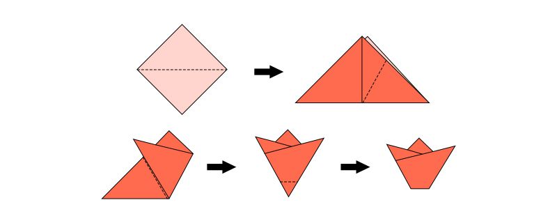 九转莲花是用特定的纸,按照沿角对折之后,向中间对折,再将下面的三角向上折起后,把小角向上折起,上面的大三角向下折,最后将底部的口撑开后就叠好了。