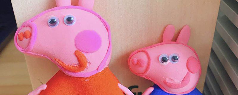 最后准备红色的橡皮泥捏成衣服的形状安装在小猪佩奇的身上,捏出小猪佩奇的嘴巴就完成了。